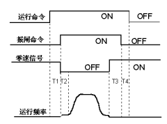 最佳的控製時序如圖2所示,變頻器接收到運行命令後,先進入零速運行過程,延時T1,保證電機勵磁達到穩態後打開報閘,同時變頻器開始運行啟動速度的啟動速度保持時間T2後是高速、低速到零速,零速運行T3後,在保證慣性影響為零的情況下,關閉報閘,由於報閘抱緊需要一定時間,因此必須延遲T4後撤消運行命令。按照此時序,可以保證啟動和停車均有理想的舒適感。在艾默生TD3100變頻器中,T1由F7.00設定,T2由F3.01設定,T3由F7.01設定,T4由控製決定,如果控製器延遲時間不夠,TD3100變頻器將自動延長命令保持時間。