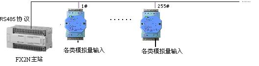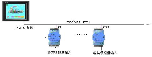 PLC的RS-485和COLM8模塊進行連接,通過標準Modbus/RTU協議,可應用於壓力、溫度、濕度、風速、流量、CO2濃度、PH值等等數據采集。