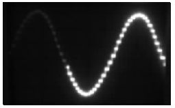 在示波器上觀察到的D/A輸出波形如圖5所示,因為D/A輸出為瞬間波形,所以在示波器上看到的波形光線隻有一部分。此外,由於LabView軟件的限製,最高輸出數據周期隻能達到1 ms。 因此, 在示波器上看到的波形有折線存在, 每個轉折點代表一個輸出點,通過設置相位值來決定轉折點的個數,即輸出多少個數據來表示一個波形。例如圖5中的相位為18,則會輸出36個點來表示一個周期波形。