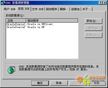 確定後,名為Ora1的數據源就建立完畢: