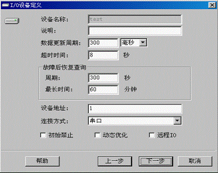 設置設備驅動,設備名稱是“test”,數據刷新周期300毫秒,設備地址是1。如圖2所示: