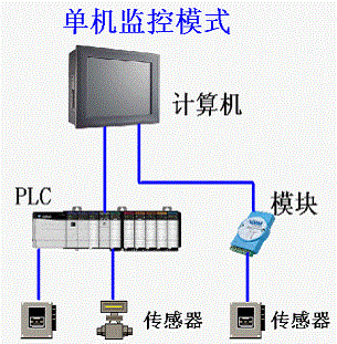 單機模式下,係統隻通過一台電腦關聯現場的硬件設備,采集設備動態數據,並進行數據處理,保存曆史記錄,其架構如下圖所示: