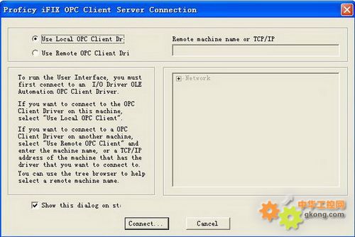 3、“配置”,選擇選擇本地連接“Use Local OPC Client Driver”,“Connet…”連接OPC server