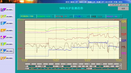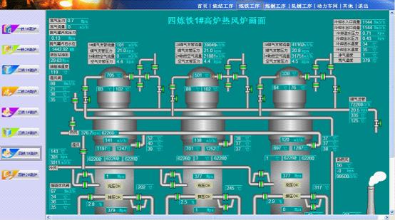 將8座高爐和7座轉爐的生產過程數據從自動化控製係統(PLC)中采集上來,然後通過網絡傳輸到監控中心的實時數據庫裏麵,實現生產數據的實時采集、實時存儲和歸檔。