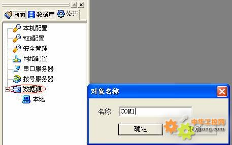 進入開發環境,在導航樹中選擇“公共/數據源”並雙擊,出現數據源名稱輸入框: