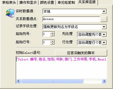 當我們通過自由報表與關係數據庫連接時的組態界麵如下: