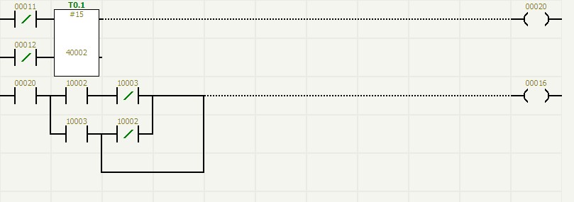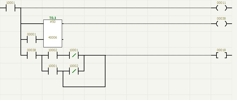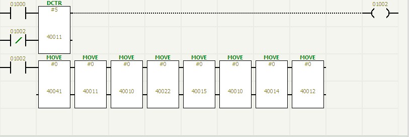 guanquchuguandekongzhifamenyinweigebaodeyuanyincaiyongdeshiqidongfamen,shitongguodiancifaduiqijinxingkongzhide。suoyizaiguanqujiankongxitongzhongduiguanquchuguanfamendejiankongcaiyongledongzuofanyingjiancehe“看門狗”檢測相結合的方法,在氣動閥開啟或關閉時,都同時檢測氣動閥的兩點回訊反饋(氣動閥的回訊反饋原理請參閱有關說明書,不在這裏敘述),通過毅天PLC編程,使氣動閥的兩點回訊形成一定的邏輯關係,使氣動閥的控製執行和監控更加可靠,達到零失誤。圖(6)是采用這種邏輯方式監控一個氣動閥的梯形圖。其中00001為電磁閥線圈,10002、10003為氣動閥回訊反饋動作,00008、00016為回訊報警。