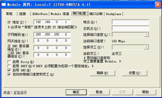 在此查看或配置以太網模塊IP地址、子網掩碼、通迅類型等信息。