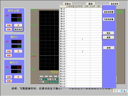 圖2上潤通訊截圖 有(you)些(xie)用(yong)戶(hu)在(zai)使(shi)用(yong)儀(yi)表(biao)時(shi)需(xu)要(yao)反(fan)複(fu)使(shi)用(yong)幾(ji)張(zhang)工(gong)藝(yi)參(can)數(shu)表(biao),那(na)麼(me)我(wo)還(hai)可(ke)以(yi)把(ba)這(zhe)些(xie)工(gong)藝(yi)參(can)數(shu)表(biao)存(cun)到(dao)電(dian)腦(nao)裏(li),在(zai)需(xu)要(yao)時(shi)調(tiao)出(chu)來(lai)傳(chuan)送(song)到(dao)儀(yi)表(biao)中(zhong)即(ji)可(ke)。用(yong)紫(zi)金(jin)橋(qiao)軟(ruan)件(jian)很(hen)容(rong)易(yi)實(shi)現(xian)。需(xu)要(yao)注(zhu)意(yi)的(de)地(di)方(fang)是(shi)當(dang)計(ji)算(suan)機(ji)與(yu)島(dao)電(dian)通(tong)訊(xun)速(su)度(du)為(wei)38400時,頁麵刷新的速率可選1秒。最後還有的客戶希望限製軟件的使用時間,這點我們也很容實現了。