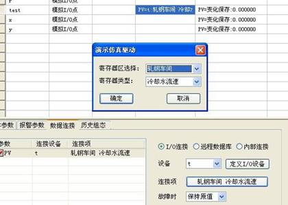 點test的PV值連接的是設備t的軋鋼冷卻水流速,數據庫裏的x、y點是用test.pv算出來的曲線上的x、y軸坐標值。Jiaodu是圓形曲線上每個點之間的角度差,