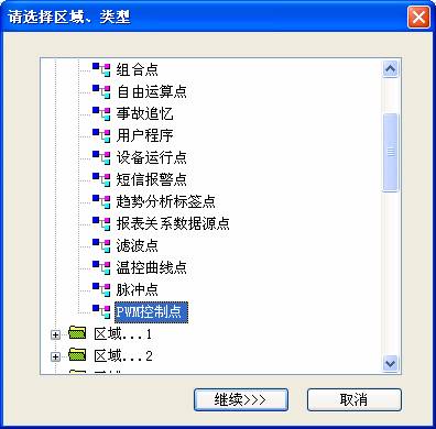 打開工程,把導航器切換到”數據庫”頁,進入“點組態”,並且打開點組態編輯器,在新建數據點時選擇“PWM控製點”。