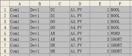 通過Excel,結合紫金橋軟件的點組態界麵的導出到Excel編輯的功能,可以快速的生成此表格。然後使用批量導入功能,就可以迅速的創建大量的寄存器。