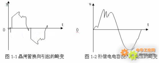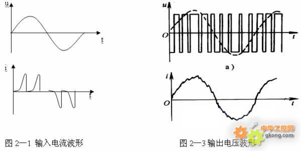 1、 變頻器所受的外部幹擾 1) 晶體管換流設備對變頻器的幹擾: 當供電網絡內有容量較大的晶閘管換流設備時,由於晶閘管總是在每相半周期內的部分時間導通,容易使網絡電壓出現凹凸(如圖1-1所示)。它使變頻器輸入側的整流電路有可能因此出現較大的反向回複電壓而受到損害。 2) 補償電容器的投入和切出對變頻器的幹擾: dangzaigongdianxianludebiandiansuoneicaiyongjizhongdianrongbuchangdefangfalaitigaogonglvyinshushi,zaibuchangdianrongtouruheqiechudezantaiguochengzhong,wangluodianyayoukenengchuxianhengaodefengzhi(如圖1-2所示)。其結果是可能使變頻器的整流二極管內承受過高的反向電壓而擊穿。 2、 變頻器對外部的幹擾 1) 變頻器電流波形:變頻器的輸入電流和輸出電流中,都具有較強的高次諧波成分,它們將對其它控製設備形成幹擾,影響其它設備的正常工作。 61548; 輸入電流的波形: 如“交-直-交”電壓型變頻器的輸入側是整流和濾波電路(如圖示2-2所示),隻有電源的線電壓U2大於電容兩端的電壓UD時,整流橋中有充電電流。充電電流
