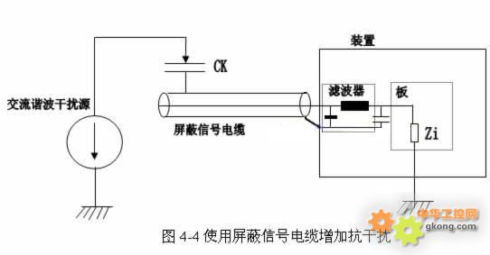 61548; 屏蔽信號電纜增加抗幹擾(如圖4-4所示): 當變頻器作為被幹擾對象時,高次諧波幹擾電流Is可以通過電勢和耦合電容進入變頻器並且在阻抗Zi上產生一個壓降,導致噪聲幹擾。為此最有效的方法是嚴格隔離高頻幹擾和信號電纜,並且信號電纜屏蔽一定要在兩端接地。 61548; 控製電纜最好使用屏蔽電纜。一般來說,控製電纜的屏蔽層應直接在變頻器的內部接地,另一側通過一個高頻小電容(例如3.3nf/3000V)jiedi。dangpingbicengliangduandechamodianyabugaohelianjiedaotongyidixianshangshi,yekeyijiangpingbicengdeliangduanzhijiejiedi。xinhaoxianhetadefanhuixianjiaozaiyiqi,jianxiaoganxingouheyinqideganrao。jiaoheyuekaojinduanziyuehao。monixinhaodechuanshuxianyingshiyongshuangpingbideshuangjiaoxian。butongdemonixinhaoxianyinggaidulizouxian,yougezidepingbiceng,yijianshaoxianjiandeouhe。buyaobabutongdemonixinhaozhiyutongyigegonggongfanhuixian。diyashuzixinhaozuihaoshiyongshuangpingbideshuangjiaoxian,yekeyishiyongdanpingbideshuangjiaoxian。 61548; 良好的接地及合理的布線:quebaoguitizhongdesuoyoushebeijiedilianghao,shiyongduanhecudejiedixianlianjiedaogonggongjiedidianhuojiedimupaishang。tebiezhongyaodeshi,lianjiedaobianpinqiderenhekongzhishebeiyaoyuqigongdi,同樣也要用短和粗的導線接地。最好采用扁平導體(如金屬網),因其在高頻時阻抗較低。 合理布線也是很重要,模擬信號和數字信號的傳輸電纜應該分別走線。盡量不要將低壓線與220VAC電源線共用同一電纜。應盡量避免電機電纜與其它電纜長距離平行走線。 設計控製櫃體時要注意EMC的區域原則,盡量把不同的設備規劃在不同的區域中。