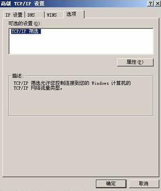 選擇“選項”,點擊“屬性”按鈕,打開“TCP/IP 篩選”對話框,如下圖:
