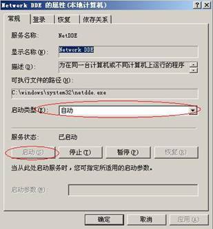 注意:1.必須保證NetworkDDE和NetworkDDEDSDM設置為自動。