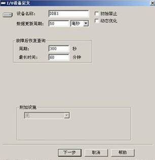 在開發界麵的導航器“數據庫”選項卡中的“I/O設備驅動”,然後依次展開目錄“DDE協議”、廠商“Microsoft”,選擇驅動程序“DDE”,雙擊驅動程序名稱“DDE”,或用鼠標右擊後在右鍵菜單中選擇“添加設備驅動”。將出現設備定義框。如下圖: