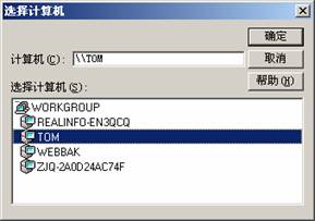 選擇服務器的名稱,設置共享的計算機。打開“共享”菜單下的“選擇計算機”,彈出“選擇計算機”對話框,如下圖: