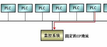 現在假設有幾十台PLC分布在比較廣闊的地方,比如分布在全國的若幹個省,這些PLC都可以連接到以太網上,但是由於每一台PLC都沒有一個固定的IP地址所以,監控係統無法直接訪問PLC從而采集到數據。按照傳統的方式需要給每個PLC分配固定的IP地址,這樣得需要分配幾十個固定IP地址,增大了係統的複雜度也增大了成本。如果能夠給監控係統所在的計算機分配一個固定的IP地址,同時把它虛擬成一個Modbus的設備,那麼在其他的幾十台上就可以使用現成的Modbus通訊模塊,直接把數據寫入監控係統中。這樣一來隻需要分配一個固定的IP地址即可解決數據采集問題。如下圖所示: