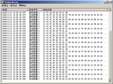 係統信息如上圖所示,可以察看到服務器啟動的時間,采集的數據庫點個數,以及通訊應答的次數。同時也會顯示一些錯誤信息。
