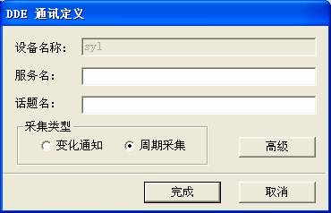 新建一個DDE設備,在“DDE 通訊定義”處填入正確的參數。