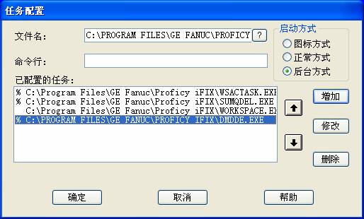 找到iFix安裝目錄下的DMDDE.exe程序,增加到任務列表裏,選擇後台啟動的方式。