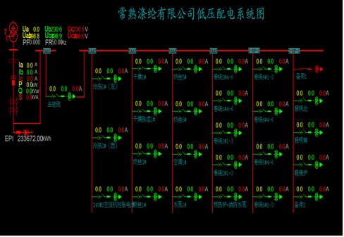 常熟滌綸有限公司(原常熟市滌綸廠)是高強低伸滌綸長絲及FDY高強低收縮滌綸工業絲(細旦)專業生產企業,並擁有自營進出口權。公司創建於 1983 年,地處長江三角洲的常熟市董浜鎮徐市。 廠占地麵積 49900 平方米,建築麵積 27319 平(ping)方(fang)米(mi),共(gong)有(you)四(si)個(ge)生(sheng)產(chan)廠(chang)區(qu)。由(you)於(yu)常(chang)熟(shu)滌(di)綸(lun)工(gong)廠(chang)用(yong)電(dian)量(liang)比(bi)較(jiao)大(da),並(bing)且(qie)為(wei)響(xiang)應(ying)國(guo)務(wu)院(yuan)製(zhi)定(ding)的(de)一(yi)係(xi)列(lie)促(cu)進(jin)節(jie)能(neng)減(jian)排(pai)的(de)政(zheng)策(ce)措(cuo)施(shi),更(geng)好(hao)的(de)對(dui)配(pei)電(dian)係(xi)統(tong)進(jin)行(xing)監(jian)控(kong)管(guan)理(li)。因(yin)此(ci)建(jian)立(li)了(le)後(hou)台(tai)電(dian)力(li)監(jian)控(kong)與(yu)電(dian)能(neng)管(guan)理(li)係(xi)統(tong),對(dui)配(pei)電(dian)進(jin)行(xing)智(zhi)能(neng)化(hua)管(guan)理(li)。