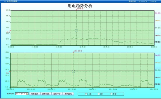 對於所有回路,不僅可以對電流、功(gong)率(lv)進(jin)行(xing)實(shi)時(shi)顯(xian)示(shi)與(yu)監(jian)測(ce),並(bing)可(ke)以(yi)根(gen)據(ju)保(bao)存(cun)的(de)曆(li)史(shi)數(shu)據(ju)做(zuo)成(cheng)趨(qu)勢(shi)曲(qu)線(xian),可(ke)以(yi)查(zha)看(kan)實(shi)時(shi)和(he)曆(li)史(shi)變(bian)化(hua)趨(qu)勢(shi),預(yu)測(ce)電(dian)力(li)負(fu)荷(he)容(rong)量(liang),並(bing)可(ke)對(dui)電(dian)力(li)故(gu)障(zhang)進(jin)行(xing)查(zha)詢(xun),保(bao)證(zheng)電(dian)力(li)負(fu)荷(he)的(de)安(an)全(quan)運(yun)行(xing)。