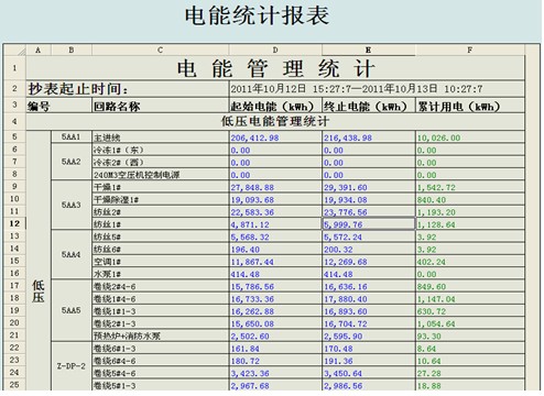係統采集的有功電度數據,按照回路名稱的不同,自動生成日報表、月報表和年報表並有報表打印功能,並可對某一回路的某一時間段內的用電量進行查詢與打印,同時這些報表也能以Excel的格式導出。