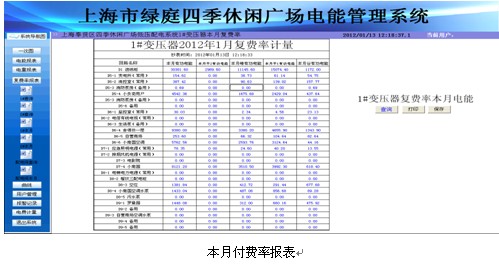 報表可以查詢所有回路任意時間間隔段所用的電度數,同時報表具有打印及導出功能