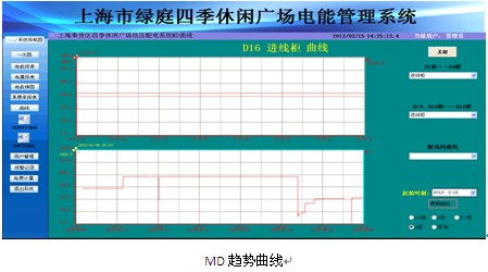 曲線趨勢:實現了用戶所要求的通過對各配電回路的電流、 MD繪製趨勢曲線,分析該回路配電運行狀況。曲線可對測量數據量程進行設置,還可設置開始時間和時間間隔,方便用戶進行任意時間的曲線查看。