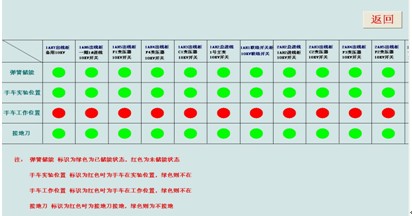 顯示高壓各回路遙信狀態,通過畫麵顏色的變化(紅色表示合閘狀態、綠色表示分閘狀態、灰色表示手車分離狀態)可以看到現場斷路器運行狀態、手車位置、接地刀閘狀態、彈簧儲能狀態等。