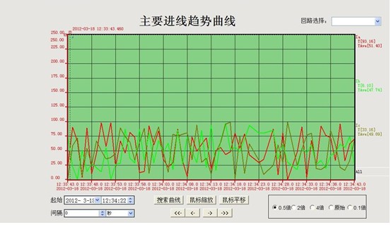 4.2. 趨勢曲線:實現了用戶所要求的通過對各配電回路的電壓、電流或功率繪製趨勢曲線,分析該回路配電運行工況