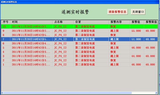 當配電回路的斷路器狀態發生改變時,會彈出遙信實時報警窗口(如下圖),顯xian示shi分fen合he閘zha時shi間jian,回hui路lu位wei置zhi,報bao警jing內nei容rong等deng信xin息xi,使shi得de值zhi班ban人ren員yuan能neng夠gou及ji時shi掌zhang握wo各ge回hui路lu供gong電dian狀zhuang態tai或huo發fa生sheng故gu障zhang的de位wei置zhi。係xi統tong還hai支zhi持chi報bao警jing記ji錄lu的de曆li史shi查zha詢xun功gong能neng,可ke以yi協xie助zhu值zhi班ban人ren員yuan追zhui查zha事shi故gu發fa生sheng的de原yuan因yin。