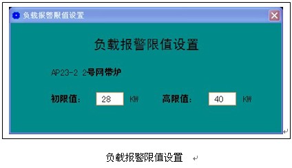 負載報警限值設置窗口可以設置選中回路負載的初限報警值和高限報警值,起到預警和報警的作用。
