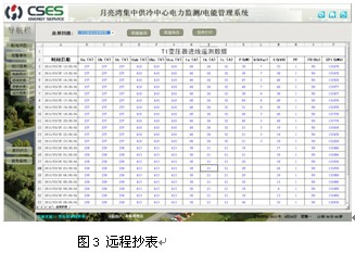 蘇州月亮灣集中供冷中心低壓配電二次圖見圖2,功能有電量遙測主要監測運行設備的電參量,其中包括:線三相電壓,電流,功率,功率因數,電能,頻率等電參量及配出回路的三相電流;遙信功能實現顯示現場設備的運行狀態,主要包括:開關的分、合閘運行狀態和通訊故障報警;遠程抄表功能,主要完成對各主要回路的遠程集抄功能,可選擇時間段進行查詢見圖3;