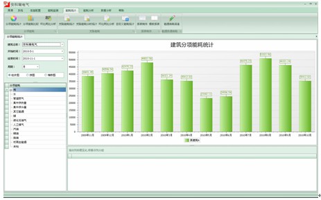 統計建築或片區能耗的時用量、日用量和年用量,以曲線圖、柱狀圖等不同方式顯示,支持報表輸出。