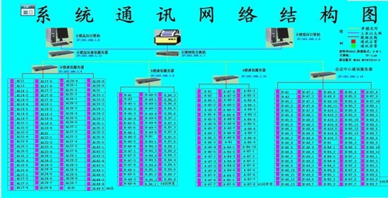 海門行政中心的值班室位於主樓負一層變配電室內,配置一台工業網絡交換機;A樓變配電室現場采用8根總線,使用一台8口的串口服務器,通過光纖連接至主樓值班室內的交換機上;B樓變配電室現場采用6根總線,使用一台8口的串口服務器,通過光纖連接至主樓值班室內的交換機上;H樓變配電室現場采用5根總線,使用一台8口的串口服務器,通過光纖連接至主樓值班室內的交換機上;再通過交換機把數據傳輸到工控機。