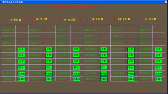 這樣下來我們的係統就完成了,下圖為1#配電室變壓器溫度信息及狀態表。