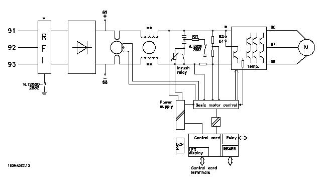 上圖中 Power supply 為開關電源部分,變頻器內部的開關電源提供四路電源。分別是兩路+5VDC,+24VDC,+18VDC。