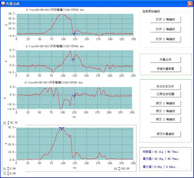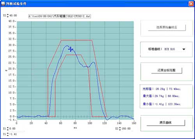 判斷試驗條件:集成有GB14166-2003(ECE R16),ECE R17,ECE R44的標準試驗曲線,均可以作為調入當前窗口對試驗條件進行判斷。