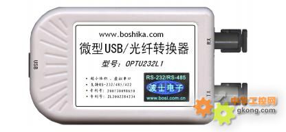 在一些工業通信的場合,由於數據量不大並且特別要求實時性,往往采用串行通信,通信協議為RS-232或者RS-485。工業計算機的USB口可以通過光纖以RS-232或者RS-485協議進行串行通信。這時可以選用USB/串口光纖轉換器,波仕電子的典型產品是OPTU232L1(多模)和OPTU232SL1(單模),如圖1。波仕電子發明和首創了USB/串口光纖轉換器、同時也是世界上唯一的USB/串口光纖轉換器,專利號200730098650。波仕電子的OPTU232L1和OPTU232SL1是最新一代USB光纖通信產品,直接從USB口轉換出一對光纖收發頭用於傳輸串口信號,而且無須供電。波仕OPTU232L1和OPTU232SL1微型USB/串口光纖轉換器具有超小型的外形(74*23*47mm)、可以將USB口虛擬成為本地COM串口(COM1-COM256)、無須修改已有的串口通信軟件。驅動程序同波仕USB232係列轉換器,支持Windows XP/CE 、LINUX、Mac OS等。