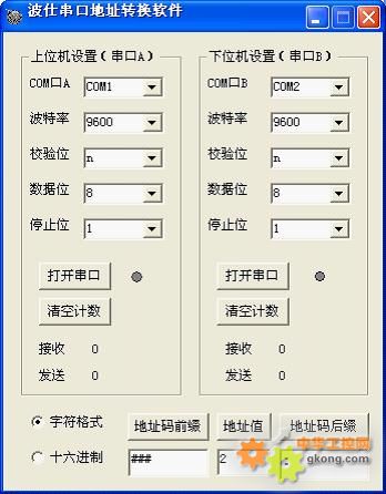 本ben文wen介jie紹shao的de串chuan口kou地di址zhi轉zhuan換huan的de純chun軟ruan件jian方fang法fa和he程cheng序xu,對dui不bu帶dai地di址zhi的de串chuan口kou多duo機ji通tong信xin具ju有you一yi定ding的de使shi用yong價jia值zhi。本ben軟ruan件jian不bu僅jin僅jin實shi現xian了le地di址zhi的de轉zhuan換huan,還hai同tong時shi實shi現xian了le波bo特te率lv、校驗位、數(shu)據(ju)位(wei)和(he)停(ting)止(zhi)位(wei)的(de)轉(zhuan)換(huan)。文(wen)中(zhong)介(jie)紹(shao)的(de)軟(ruan)件(jian)可(ke)以(yi)從(cong)波(bo)仕(shi)電(dian)子(zi)的(de)網(wang)站(zhan)下(xia)載(zai)。純(chun)軟(ruan)件(jian)地(di)址(zhi)轉(zhuan)換(huan)的(de)不(bu)足(zu)之(zhi)處(chu)在(zai)於(yu)占(zhan)用(yong)了(le)一(yi)台(tai)計(ji)算(suan)機(ji),並(bing)且(qie)必(bi)須(xu)配(pei)有(you)兩(liang)個(ge)專(zhuan)門(men)用(yong)於(yu)地(di)址(zhi)轉(zhuan)換(huan)的(de)串(chuan)口(kou)。如(ru)果(guo)要(yao)實(shi)現(xian)方(fang)便(bian)簡(jian)單(dan)的(de)地(di)址(zhi)轉(zhuan)換(huan),還(hai)是(shi)要(yao)用(yong)具(ju)有(you)雙(shuang)串(chuan)口(kou)的(de)單(dan)片(pian)機(ji)或(huo)者(zhe)FPGA。通過對單片機或者FPGA的兩個串口進行地址等格式的設置,而兩個串口在內部進行數據地址幀的加減。這種產品就是硬件串口地址轉換器,我們將以另外文章《串口地址轉換的純硬件實現》予以介紹。