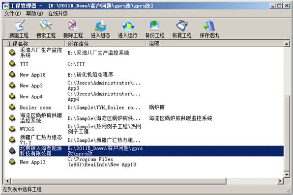 a. 進入工程管理器,在工程目錄下選擇要備份的工程(選中的工程為藍色背景),如下所示: