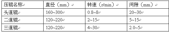 圖1 餅幹衝印成型機外形 二、設備組成及運行要求 1.壓片機構 yapianshibingganchongyinchengxingdezhunbeijieduan。qigongyiyaoqiuyachudemiandaipingzhengzhimilianxu,houdujunyunwending,biaomianguanghuazhengqi,budeliuyouduoyudeneiyingli。cijigouyibanyou3對壓錕組成,分別為頭道輥、二道輥、三道輥。壓輥直徑依次減小,各輥轉速則依次增大,下表為國內壓輥的一般參數。 表1 壓輥一般參數