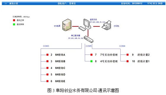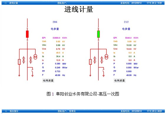 安科瑞電氣股份有限公司於2012年8月承接了阜陽創業水務智能配電監控係統項目,為該項目定製的電力監控係統為Acrel-2000。gaidianlijiankongxitongshizaifuyangchuangyeshuiwuyouxiangongsiyuanyoubianpeidianguijichushangzengjiadaitongxunjiekoudeankeruiduogongnengwangluodianliyibiao,jiangdianwangyongdiancanshuyuanchuanzhijiankongzhongxin,congershixianjizhongyuanchengjiankongheguanlideyigegaodiyapeidiangaizaoxiangmu。tongguoduixianyou10KV變配電所實施改造,建立一套比較規範的變配電所電力監控係統,以便於掌握進線供電質量、故障情況、廠內負荷變化等,提高變電所運行的安全性,同時監控中心進行數據采集與存貯、數據統計與分析、數據發布與遠傳;以實時監測電網數據為依據,為阜陽創業水務有限公司的能源監控與節能提供有效手段,實現有效節能並提高能源管理水平。