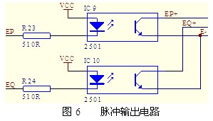 脈衝輸出接口為光耦隔離型,脈衝波形為標準方波,脈衝寬度為 80ms ± 20ms ,硬件原理如圖 6 所示。