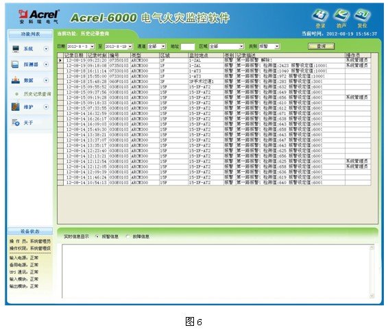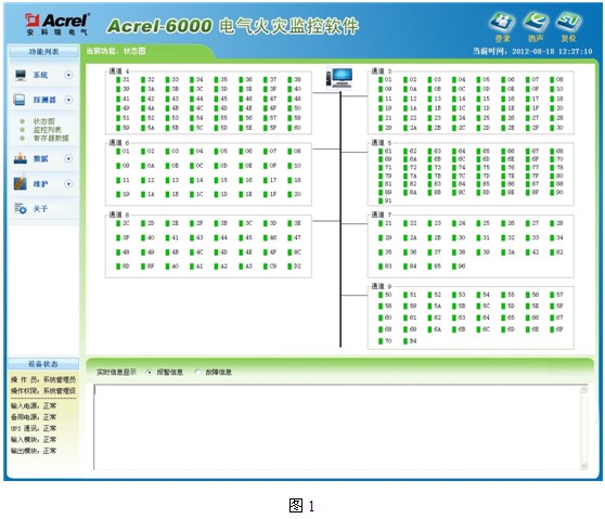 Acrel-6000電氣火災係統,可實時和定時采集現場設備的剩餘電流數據和溫度、並有報警提示聲光報警等功能,可根據實際需要對報警溫度值、漏電流值進行設置,報警故障解除時,可遠方進行複位。係統可對報警事件、日期、報警值、越線值進行記錄,並生成報表,可對報警事件記錄進行打印。