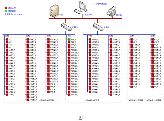weimanzupeidianshitongyijiankongdeyaoqiu,peidianxianchanganzhuangdeankeruigongsiwangluodianliyibiaotongguopingbishuangjiaoxianshoulashoushixianglianzhihoutaizhujineidegongyechuankouka,shixianduixianchangshujudecaiji,cunchu,chuli,shishixianshiyijilishizhaxun,組網結構圖拓撲結構如圖1所示: