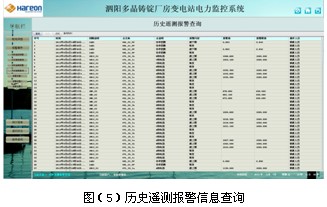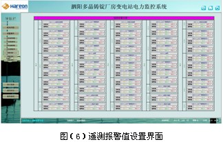 遙yao信xin和he遙yao測ce報bao警jing功gong能neng,主zhu要yao完wan成cheng對dui低di壓ya各ge出chu線xian回hui路lu的de開kai關guan運yun行xing狀zhuang態tai和he負fu載zai進jin線xian監jian控kong,對dui開kai關guan變bian位wei和he負fu載zai越yue限xian彈dan出chu報bao警jing界jie麵mian指zhi示shi具ju體ti的de報bao警jing位wei置zhi並bing聲sheng音yin報bao警jing,提ti醒xing值zhi班ban人ren員yuan及ji時shi處chu理li。遙yao測ce報bao警jing值zhi設she置zhi界jie麵mian可ke以yi看kan到dao每mei個ge監jian控kong點dian的de實shi時shi值zhi和he報bao警jing設she置zhi值zhi,方fang便bian值zhi班ban人ren員yuan比bi對dui進jin線xian設she置zhi,負fu載zai越yue限xian值zhi在zai相xiang應ying權quan限xian下xia可ke自zi由you設she置zhi。具ju備bei曆li史shi查zha詢xun功gong能neng。見jian圖tu(4)至圖(6)。